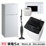 【新品】ベーシック5点家電セット 西日本地域用 60ヘルツ 小型冷蔵庫 JR-12A-W 全自動洗濯機 JW-U45B-K 電子レンジ JM-17K 60Hz 炊飯器 JJ-M32B 掃除機 TC-E249B レンタル